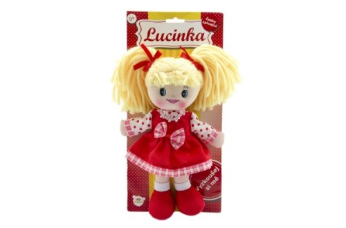 Handrová bábika Lucinka po stlačení bruška rozpráva: "Ahoj, ja som Lucinka a naučím ťa pesničky" a spieva pesničky "Skákal pes..., Holka modrooká..., Mačka lezie dierou..." Rozmer: 30 cm, na karte 18 x 38 x 9 cm Vhodná od 0