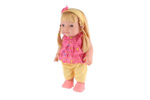 Ktoré dievčatko by nebavila hra s bábikami? Bábika má dlhé vlasy. Táto bábika vydáva aj zvuky. Pre spustenie zvuku je nutné vybrať poistku umiestnenú v strojčeku na chrbte bábiky. Batérie 3x AG13 sú súčasťou výrobku. Rozmery výrobku 15 x 34 x 10 cm Vhodné pre deti od 3 rokov