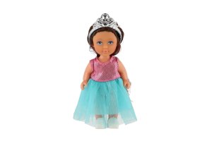 Elegantná bábika s korunkou a dlhými vlasmi, ktorá svojim pôvabom a krásnym vzhľadom poteší každé dievčatko. Vďaka svojej veľkosti bude skvelou kamarátkou pre vaše dievčatká. Vďaka pohyblivým častiam a krásnemu dizajnu bábika inšpiruje deti k tvorivej hre, rozvíja ich predstavivosť a sociálne zručnosti. Rozmery balenia 7 x 15 x 5 cm. Vhodné pre deti od 3 rokov.