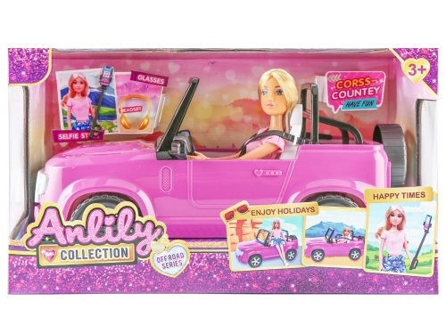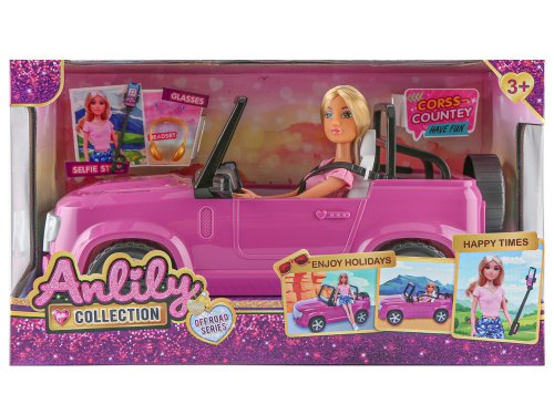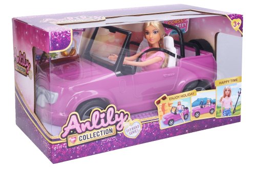 Bábika s autom. Veľkosť bábiky 30 cm. Súčasťou auto, selfie tyč a slúchadlá.