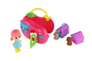 Krásna sada pre malé dievčatká. Sada obsahuje bábiku s domčekom ak tomu ešte 2 miláčikov so svojou búdou. Rozmery balenia 14 x 24 x 6 cm. Vhodné pre deti od 3 rokov.