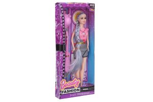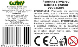 Bábika s gitarou. Veľkosť bábiky 29 cm. Obsahuje: bábiku, klobúk, gitaru.