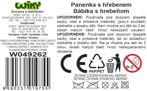 Bábika s hrebeňom. Veľkosť 43cm. Obsahuje bábiku a hrebeň na vlasy.