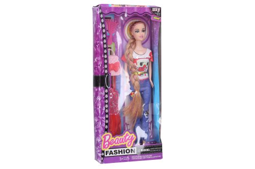 Bábika s kabelkou. veľkosť bábiky 29cm. Obsahuje: bábiku, kabelku, hrebeň, zrkadlo, šaty