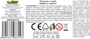 Bábika s mašľou. Mäkké telíčko. Rozmery 20x9x39 cm. 3xAG13 batérie súčasťou.