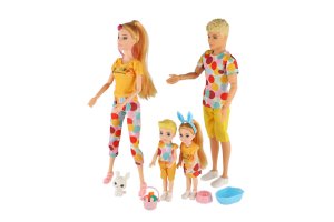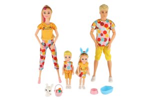 Sada bábik predstavujúca kompletnú rodinku je ideálna pre hranie na domácnosť, výlety alebo starostlivosť o domáceho maznáčika. Figúrky majú pohyblivé časti tela a sú oblečené do farebne zladeného oblečenia. Súčasťou balenia sú aj doplnky ako zajačik, košíček a ďalšie nevyhnutnosti pre detskú hru. Set obsahuje celkom 4 postavy - mamičku, otecka a dve deti.