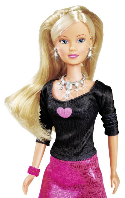 Bábika Steffi v sukni a obchod so šperkami. Súčasťou je 2x náhrdelník, náušnice, náramok, kabelka. Veľkosť bábiky 29 cm.