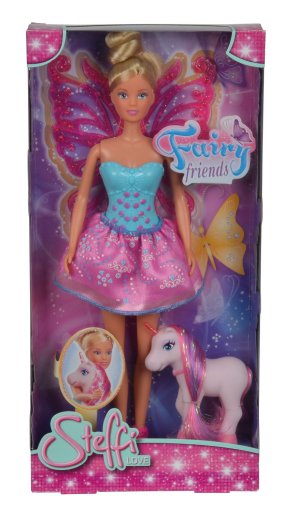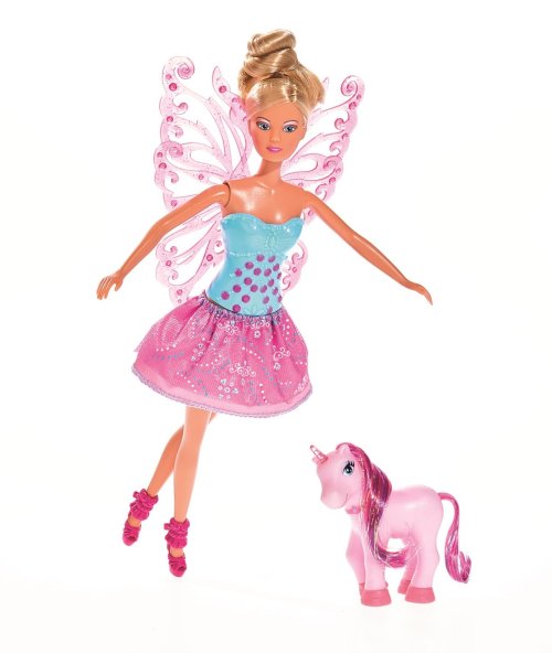 Bábika Steffi ako víla v nádherných šatách as odnímateľnými krídlami. Sprevádza ju roztomilý kamarát jednorožec. Veľkosť bábiky 29 cm.