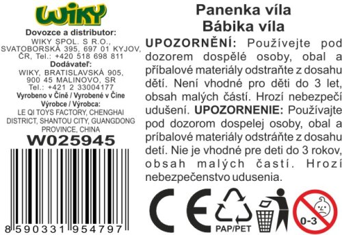 Bábika víla. Veľkosť 19 cm. 4 farebné varianty vlasov - zelená, ružová, modrá, žltá.