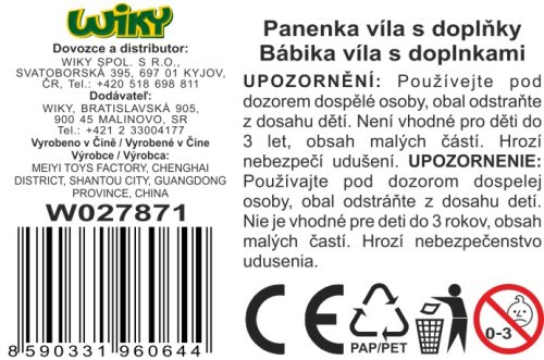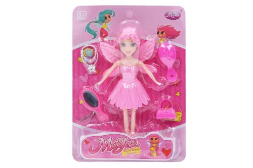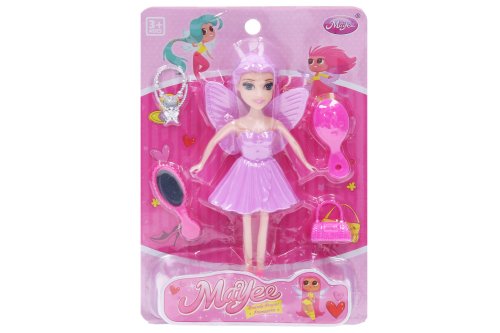 Bábika víla s doplnkami. Veľkosť 16 cm. 3 varianty - modrá, ružová, fialová.