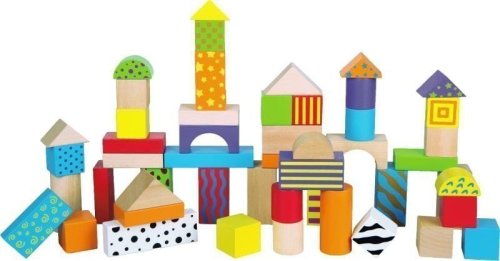 Drevené kocky v praktickom vedre s vekom. - Vedro obsahuje 50 kociek. - Rozmery balenia: 18 x 18 x 18 cm - Vek 2 +