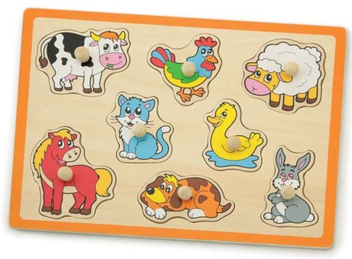 Dieťa sa podľa obrysov a tvaru snaží nájsť správny obrázok (rozvoj predstavivosti a logického myslenia) a umiestniť ho do správneho otvoru (rozvoj jemnej motoriky). Vďaka obrázkom sa deti učia spoznávať zvieratká, ktoré žijú na statku.