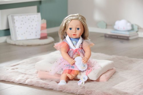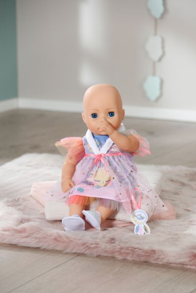 Baby Annabell sa každý večer, keď ide spať, teší na svoju nočnú košieľku Sladké sny – niet divu, hravé šatôčky s jemnou potlačou a tylovými rukávmi sú perfektným oblečením, aby sa v postieľke Sladké sny nechala unášať do zeme snov. Lapač snov ju chráni pred zlými snami a papučky udržia nohy v teple.