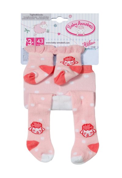 S touto sadou ponožiek a pančucháčov v rôznych farebných kombináciách Baby Annabell nebudú nikdy zábsť nohy. V každej sade nájdete jedny pančuchy a jedny ponožky. Vybrať si môžete buď biele s ružovými obláčikmi alebo svetlo ružové s bodkami.