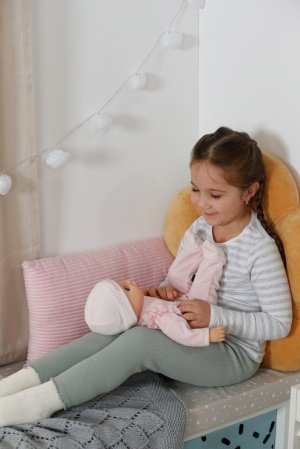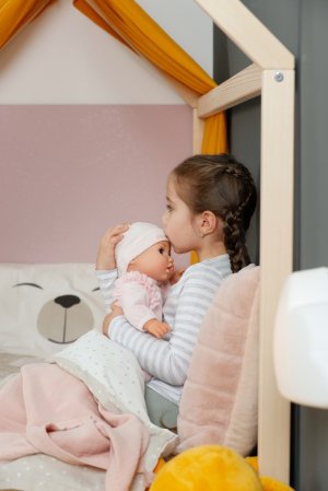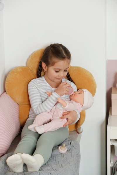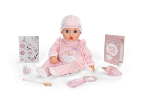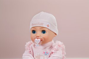 BABY born Annabell veľkosti 43 cm s elektronickými funkciami. • Mäkké telíčko: Skvelé na maznanie. • Prirodzené pohyby a interaktívne reakcie: Keď má v pusinke cumlík alebo keď pije z fľaštičky, hýbe pusinkou a otvára a zatvára oči, zvuky pri cvičení bábätkovskej gymnastiky. • Sladké uspávanie: Dá sa v dvoch smeroch ukolísať k spánku. • Legrační reakcie pri šteklení: Niekedy si dokonca aj roztomilo prdne. • Funkcia bábätkovskej gymnastiky: Roztomilé zvuky, keď sa jej hýbe rukami a nohami.