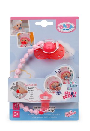 Kúzelný cumlík robí hru na rodičov ešte realistickejší a interaktívnejší! Vďaka špeciálnej funkcii bábiky Annabell, Alexander, Emma, Eva, Jonas a Leah reagujú na cumlík ako skutočné bábätká. Zatiaľ čo Annabell a Alexander majú vďaka cumlíku sacie reflexy, Emma, Eva a Jonas pri otáčaní cumlíka zatvárajú oči a pokojne zaspávajú. To robí večerné uspávanie zvlášť láskyplným a zaisťuje realistické hranie. Perfektný pre malých „rodičov“ bábik, ktorí sa chcú starať o svoje bábiky veľkosti 43 cm. • Bábiky reagujú na cumlík • Annabell a Alexander sajú cumlík • Emma, Eva a Jonas zatvárajú oči pri otáčaní cumlíka • Perfektný doplnok na hranie sa s panekami • Vhodné pre funkčné bábiky veľkosti 43 cm: kompatibilné s Emmou, Evou, Jonasom, Annabell, Alexandrom a Leah.