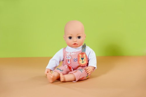 Nájdete medzi všetkými tými zvieratkami leopardy? Na laclových nohaviciach je veľa obrázkov, a preto pod nimi má BABY born už len jednoduché biele tričko s dlhým rukávom. BABY born Teddy • S ramienkom z recyklovaného materiálu • Kvalitný doplnok pre radosť z nápaditej, rozmanitej a dlhotrvajúcej hry