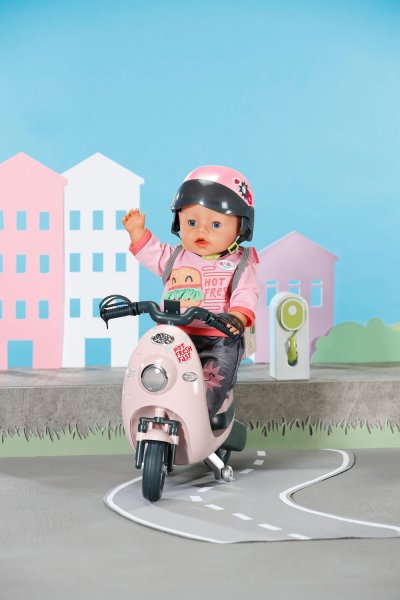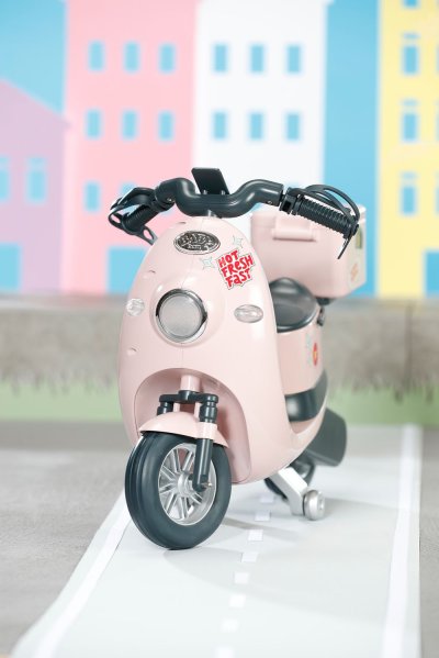 Najlepší spôsob, ako sa pohybovať po meste, je na skútri. A preto aj BABY born vyráža do ulíc so svojim novým moderným elektrickým skútrom. Dá sa ovládať diaľkovým ovládaním a jazdí dopredu aj dozadu. Elektrický skúter ako je tento je samozrejme taktiež nutné nabíjať. Pri pripojení k nabíjacej stanici sa rozsvieti zadné svetlo, aby hra na nabíjanie bola autentická (samotné nabíjanie nie je skutočné). Šťastnú cestu, BABY born!