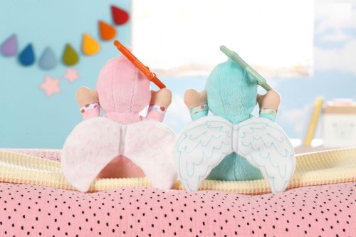 BABY born for babies Anjelik je bábika veľkosti 18 cm s hrkálkou vo vnútri. Na výber v ružovej alebo tyrkysovej farbe.