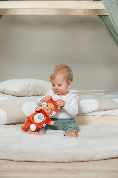Najroztomilejší kamarát v izbičke vášho bábätka! Líštička BABY born for babies je navrhnutá pre bábätká. Má mäkkú vinylovú hlavičku a látkové telíčko s kapsičkami na prsty, vďaka ktorým líštička ožije a premení sa na veselého maňuška s líščím chvostíkom. Mäkká a hebká bábika je ideálna na maznanie a nemusíte sa báť ani toho, keď sa zašpiní. Možno ju ľahko prať na 30 °C.