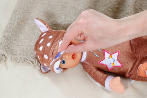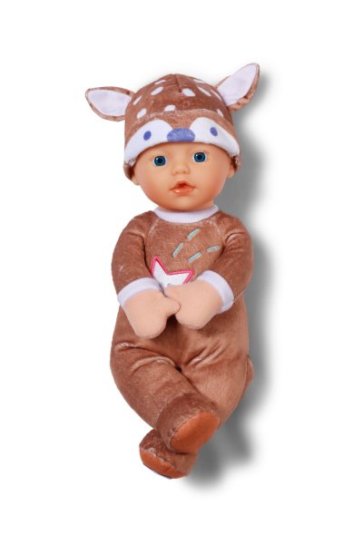 Mäkká bábika - zvieratko: vďaka mäkkému telíčku a mäkkej vinylovej hlavičke je bábika v kostýme jelinka skvelou kamarátkou na maznanie a je perfektnou bábikou pre tie úplne najmenšie deti už od narodenia. Vnútri bábiky sa ukrýva hrkálka. Bábiku možno ľahko vyprať na 30 ° C.