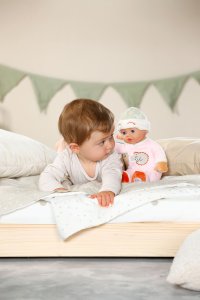 Tak hebučká: Vďaka mäkkému telíčku s roztomilou výšivkou spiaceho krokodíla a mäkkej vinylovej hlavičke je ideálnou bábikou na maznanie a skvelou prvou spoločníčkou pre tie najmenšie deti už od narodenia. Čiapočku možno pretiahnuť bábike cez oči a hrať sa tak na to, že bábika oči zatvára a otvára. Vnútri bábiky je ukrytá hrkálka, ktorá pri hraní povzbudzuje zvedavosť na objavovanie sveta. Pokiaľ sa Spinkáček zašpiní, možno ho ľahko vyprať v ruke na 30 ° C. • Originálna bábika BABY born • Model „pre najmenších“ (30 cm) s veľmi mäkkým telíčkom bábiky • S hrkálkou vo vnútri • Vhodná aj pre najmenšie deti už od narodenia • Možno ručne prať