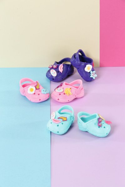 Nožičky v bezpečí na pláži aj pri bazéne: farebné gumové sandálky nielen ochránia malé nožičky, ale aj vyzerajú mimoriadne štýlovo. Nacvakávacie ozdoby je možné použiť na vytvorenie vlastného vzhľadu topánočiek - takže zámena rozhodne nehrozí.