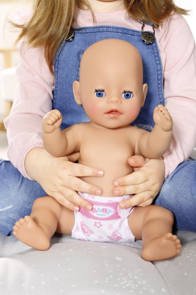 Mäkké, pohodlné, ružovo-biele. Presne také sú látkové plienky pre bábiky BABY born Little. Praktické látkové plienky sa zatvárajú na dva suché zipsy a vďaka nim krásne sedia, nech sa deje, čo sa deje. Pretože sú ozdobené krásnou potlačou, nie je žiadna hanba ich ukazovať aj ostatným. Ružové hviezdičky, srdiečka a veselé tváre medvedíka Bruna, zajačika Bunnyho, psíka Bella a kačičky Berty robia z plienky roztomilú nevyhnutnosť. • Originálny doplnok pre bábiky BABY born Little • Pre nápaditú, rozmanitú a dlhotrvajúcu hru BABY born Little Plienky pre bábiky vo veľkosti 36 cm. V balení 2 ks.