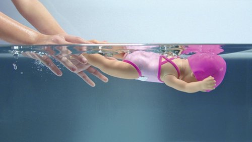 Malé dievčatko už sa toho na hodine plávanie toľko naučila.