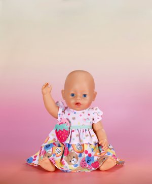 Farebné šaty s motívmi ovocia, volánikovými detailmi a zábavným pásikom s ozdobnou jahôdkou. • Veselé ovocie: Farebné šatôčky s potlačou ovocia. • Udržateľnosť: Súčasťou je ramienko z recyklovaného materiálu. • Vhodné pre bábiky veľkosti 43 cm a pre medvedíkov BABY born Teddy. • Kvalitný doplnok pre radosť z nápaditej, rozmanitej a dlhotrvajúcej hry.