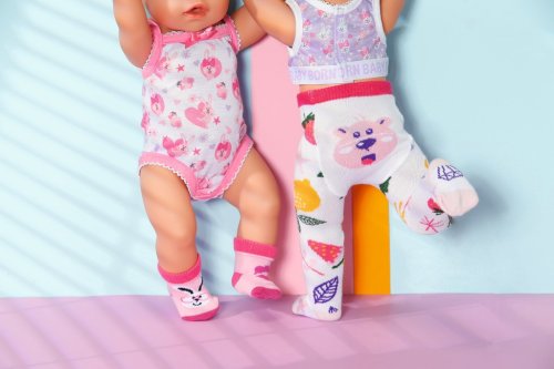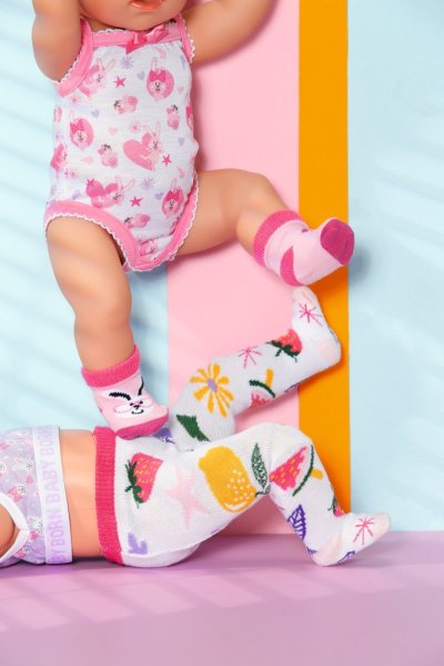 Vďaka týmto roztomilým ponožkám sú studené nohy minulosťou. Farebné pančuchy môže BABY born nosiť aj pod šaty – teplé obliekanie môže vyzerať tak dobre. Nesmie chýbať pri autentických hrách na bábätko.