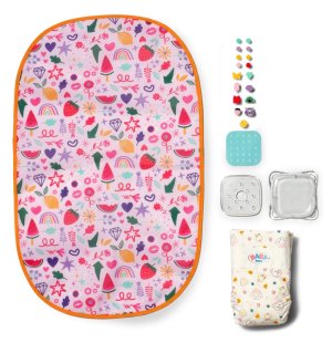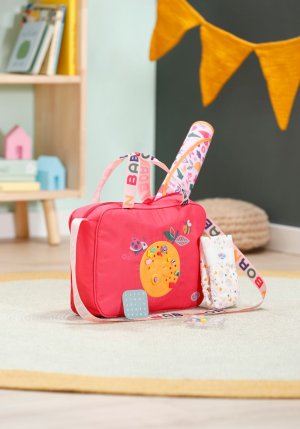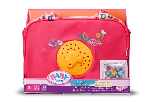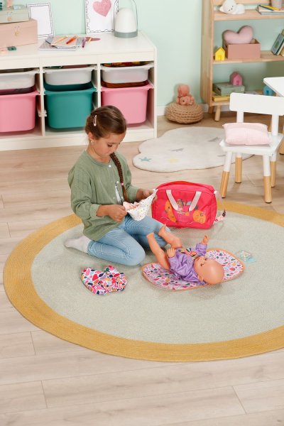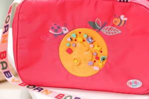 BABY born Prebaľovacia taška s nacvakávacími ozdobami. • Obsahuje všetko pre starostlivosť o bábiku: plienku, dózu na púder a úložnú krabičku. • S nacvakávacími ozdobami: deti si môžu prebaľovaciu tašku prispôsobiť podľa svojej fantázie. • Podporuje „hranie sa na“ a rozvoj starostlivosti o druhých. • Ideálne na cesty aj domov. • Pre bábiky veľkosti 36 cm a 43 cm. • Kvalitný doplnok pre radosť z nápaditej, rozmanitej a dlhotrvajúcej hry.