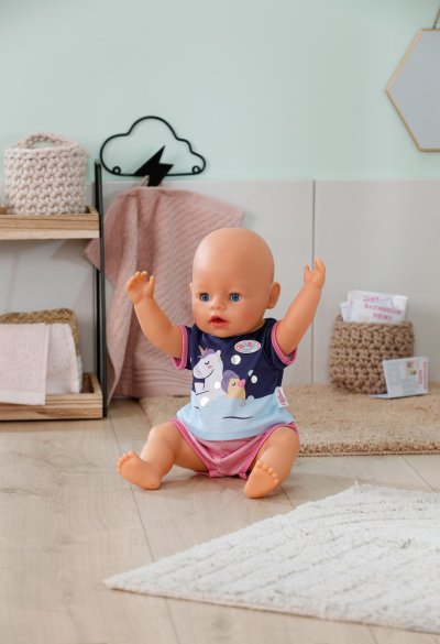 BABY born Pyžamo jednorožec pre bábiky veľkosti 43 cm. • Motív jednorožca • Pohodlné nosenie: Pyžamo sa skladá z trička a kraťasov • Ideálne pre sladké sny • Vhodné pre bábiky veľkosti 43 cm a medvedíka BABY born • Farebné a moderné: výrazné farby v súlade s aktuálnymi trendmi