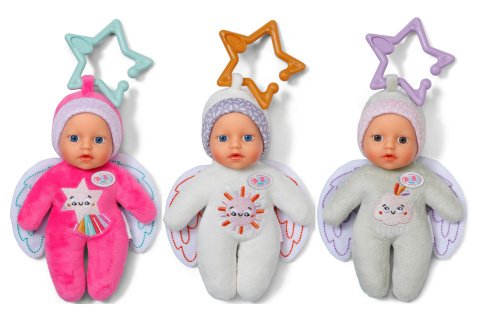 Roztomilá bábika s mäkkým telíčkom v plyšovom oblečku s motívom anjelika s krídlami. Určené pre deti od 0 mesiacov. 3 druhy - dodávame podľa skladovej dostupnosti. Veľkosť bábiky 18 cm.