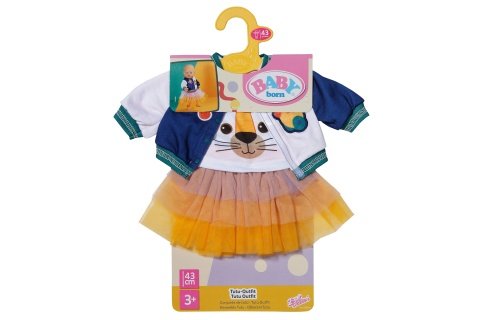 Farebný akcent nielen na pochmúrne dni. Outfit s tričkom s tigriou tvárou, cool bunda, a tutu sukienka v žltej, oranžovej a fialovej farbe zaručuje dobrú náladu. Vek 3+
