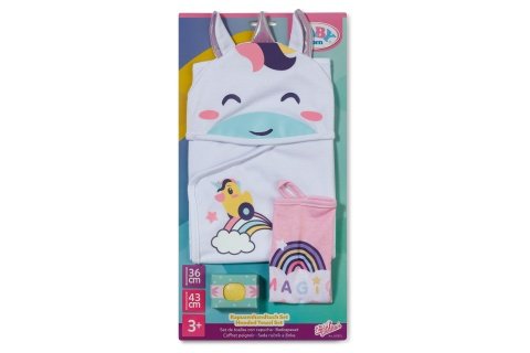 Mäkký uterák s kapucňou a farebná žinka prinášajú do hry s bábikou jemnú starostlivosť a realistické kúpacie rituály. Po kúpeli sa bábika BABY born príjemne zababuší do hebkého uteráka s kvetinovou potlačou, zatiaľ čo žinka doplní každodennú hru o detaily hygieny. Ideálny doplnok pre rozvoj starostlivosti, jemnej motoriky a fantázie. Vek 3+
