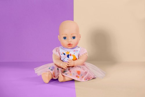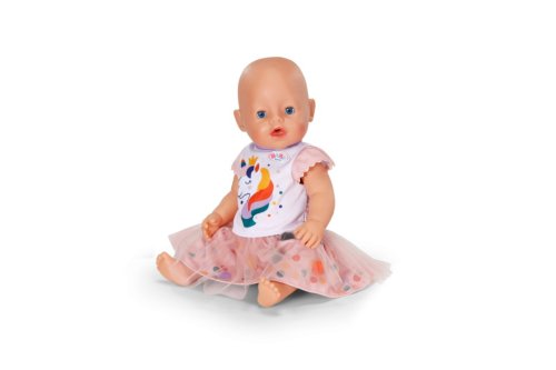 Krásny obleček pre vašu bábiku BABY born. Veľkosť oblečenia 43 cm. Svetlý 2dielny set (tričko s motívom jednorožca a tutu sukne s brmbolcami). Vek 3+