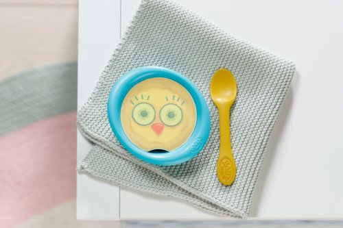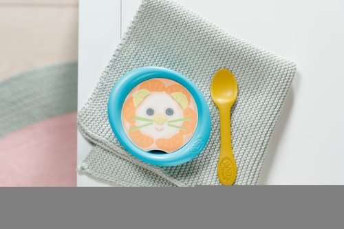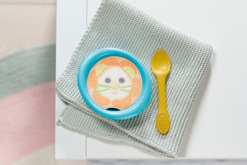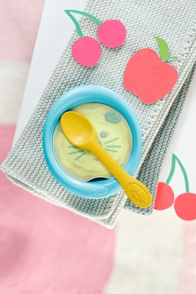 „Čo bude dnes na obed, BABY born? Súčasťou sady je 5 doštičiek s obrázkami rôznych jedál, mištička a lyžička.“