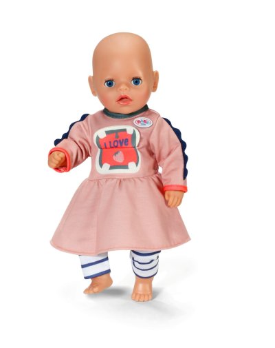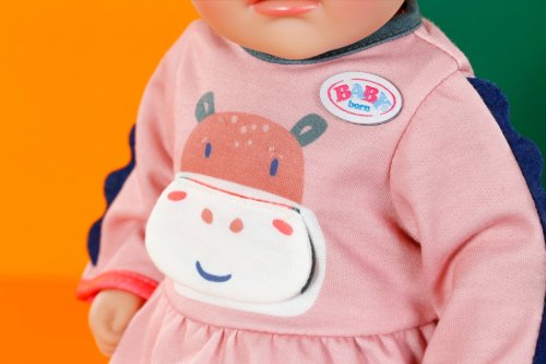 Vitajte v džungli! Hrošík na šatách deťom okamžite zdvihne náladu. Roztomilé detaily na rukávoch spolu s modrými pruhovanými legínami perfektne dopĺňajú celý outfit. A to nie je všetko: Hrošík dokonca môže otvoriť ústa a má pre vás sladkú správu! • Sada šiat s motívom hrošíka a pruhovaných legín • S interaktívnym prvkom – otvárateľná pusa hrošíka • Vhodné pre bábiky veľkosti 36 cm • Súčasťou je ramienko z recyklovaného materiálu • Kvalitný doplnok pre rozšírenie kreatívnej a pestrej hry