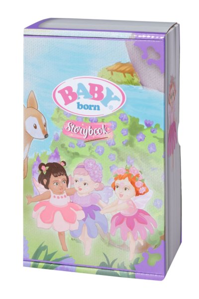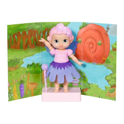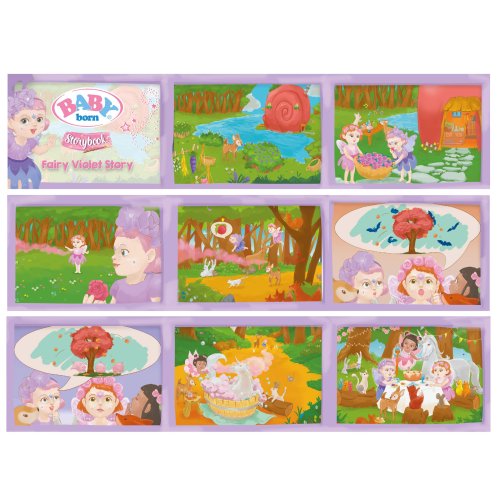 BABY born Storybook Fialková víla je bábika veľkosti 18 cm. Súčasťou je kúzelná palička, pódium, kulisy a obrázková knižka.
