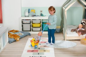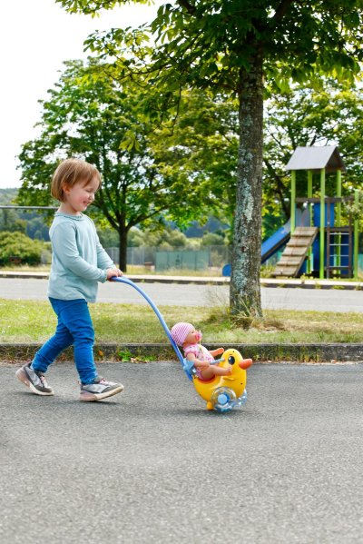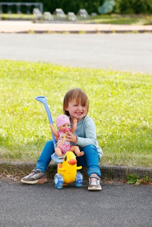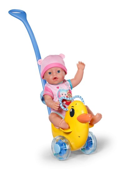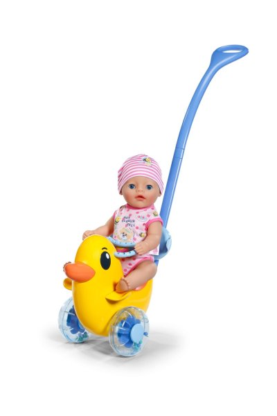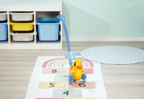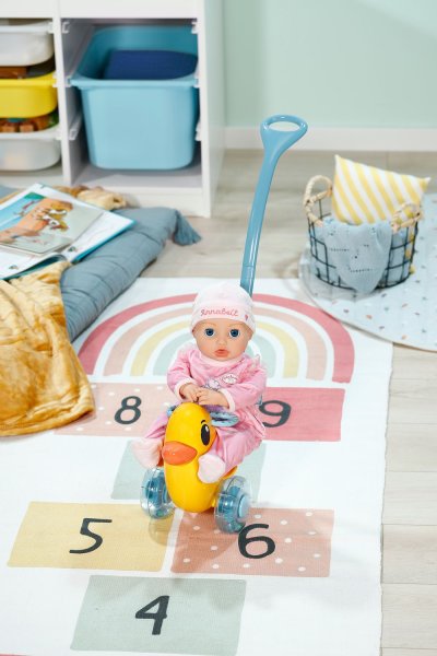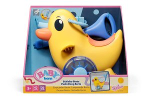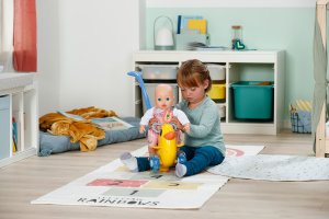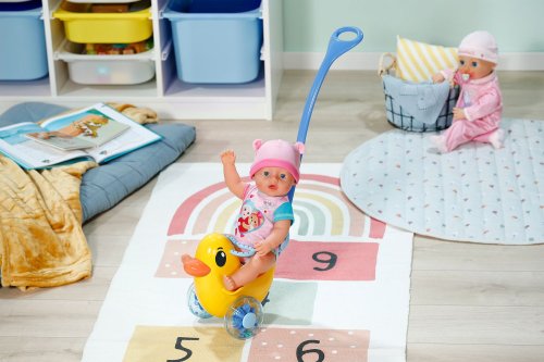 Berta je tu! Nielenže sa prechádza v animovanom seriáli BABY born, ale teraz dorazila aj do detskej izbičky. Rovnako ako na horskej dráhe môže byť bábika v sedadle pripnutá sklopným madlom. Vďaka nastaviteľnému operadlu majú všetky bábiky BABY born na sedátku bezpečnú oporu. Pod sedátkom sa skrýva malá tajná priehradka. Berta môže byť tlačená ručne po zemi alebo pomocou odnímateľnej a výškovo nastaviteľnej vodiacej tyče. Hrkajúce sa kolieska pridávajú ďalší herný prvok, ktorý pri prechádzkach s Bertou zaisťuje ešte viac zábavy – ako vo vnútri, tak vonku. Emma, Lena a Teddy tak môžu byť vyvezení aj mimo detskej izbičky. Tak hore nasadať a ideme! • Striekadlo Berta s odnímateľnou a nastaviteľnou vodiacou tyčou • Hrkajúce kolieska • Vďaka nastaviteľnému operadlu a upevňovaciemu madlu je vhodná pre všetky bábiky BABY born • Pod sedátkom je tajná priehradka na malé poklady • Kvalitný doplnok pre radosť z nápaditej, rozmanitej a dlhotrvajúcej hry