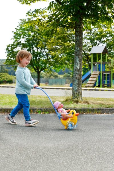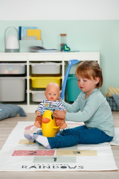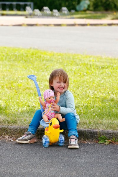 BABY born Strkadlo Berta s nastaviteľným operadlom a odnímateľnou vodiacou tyčou. • Prispôsobí sa výške dieťaťa: S odnímateľnou a nastaviteľnou vodiacou tyčou. • Hrkajúce sa kolieska: Priehľadné modré kolieska sú naplnené korálkami. • Vhodná pre všetkých: Vďaka nastaviteľnému operadlu a upevňovaciemu madlu sa na sedátko zmestí každá bábika BABY born. • Pod sedátkom je ukrytá tajná priehradka na malé poklady. • Kvalitný doplnok pre radosť z nápaditej, rozmanitej a dlhotrvajúcej hry.