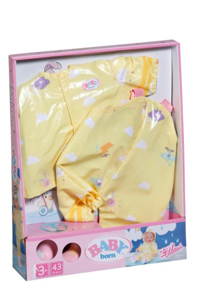 BABY born Súprava do dažďa Deluxe, 43 cm pre bábiky veľkosti 43 cm. Súčasťou je pláštenka, nohavice a čižmy.