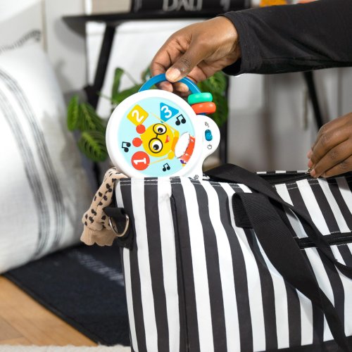 Pomôžte bábätku objavovať hudbu s hudobnou hračkou - bubnom Tiny Tempo. Tento ľahký a prenosný bubon obsahuje 21 reálnych zvukov nástrojov, 6 klasických melódií a dvojitý prstenec s korálkami, ktorý podporuje hudobné objavovanie, učenie sa princípu príčina-následok a rozvoj jemnej motoriky. Vďaka dvom herným režimom môže bábätko v režime Drum Play vytvárať jedinečné rytmy jednoduchým kliknutím alebo si v režime Melody zahrať spolu so 6 klasickými skladbami. Každé ťuknutie podporuje učenie príčina-následok. Hračka s korálkami pomáha rozvíjať obratnosť a jemnú motoriku. Farebné nálepky zoznamujú s farbami, číslami a tvarmi a obľúbený hudobný kamarát Cal the Caterpillar z kníh a videí Baby Einstein povzbudzuje bábätko pri hudobnom objavovaní. Bubon je ideálny pre hudbu na cestách – je malý, ľahký, ľahko sa drží aj trasie a podporuje hudobné zapojenie v kočíku, na cestách aj pri hre doma. Vyžaduje 2 AA batérie. Čistí sa jednoducho utretím.