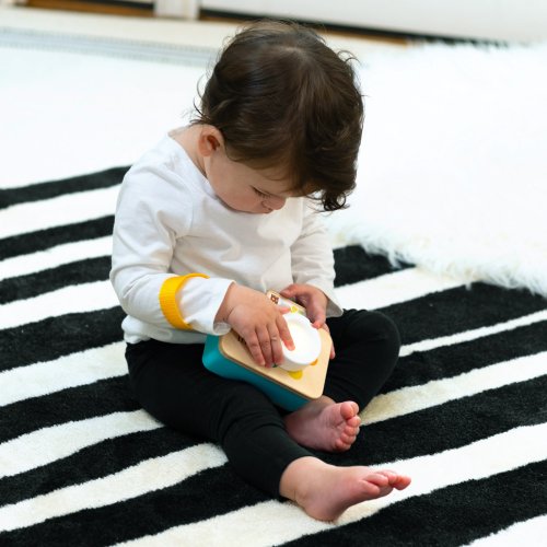 Učenie farieb je hračkou s hračkou fotoaparát Baby Einstein + Hape Learning Lens. Dve interaktívne funkcie zapájajú dieťatko do hry a učenia farieb a zdokonaľujú príčinu a následok a jemné motorické schopnosti pri každom stlačení a otočení. Otočte objektív fotoaparátu, aby ste zaostrili na učenie farieb. Bábätko sa môže naučiť 6 názvov farieb v 4 jazykoch (angličtina, španielčina, francúzština a nemčina), vidieť, ako sa šošovka rozžiari ku každej farbe, a užívať si melódie a zvuky. Stlačte tlačidlo spúšte a „vyfoťte“ svoje obľúbené postavičky Baby Einstein! Zakaždým, keď dieťatko stlačí tlačidlo, objaví sa „fotka“ a dieťatko môže počuť skutočné zvuky uzávierky, aby naučilo príčinu a následok. Drevený povrch fotoaparátu inšpirovaný Montessori s certifikáciou FSC a retro design dieťatko ľahko drží a uchopuje. Remienok umožní vášmu malému drobcovi vziať si túto hračku na cesty a vyzerať ako skutočný fotograf.