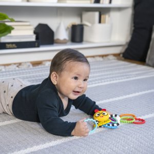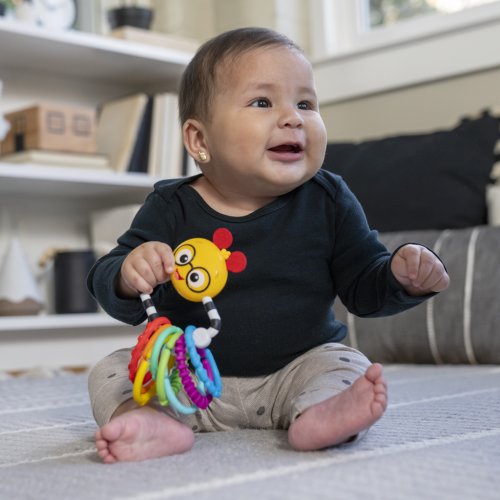 Zaujmite detské očká, rúčky aj myseľ so senzorickou hračkou Baby Einstein Cal's Connectors. Táto sada 8 farebných prepojovacích krúžkov podporuje rozvoj jemnej motoriky a zmyslové vnímanie už od narodenia. Každý krúžok má inú textúru, ktorú si bábätko zamiluje pri skúmaní dotykom. Hračka je inšpirovaná húsenicou Calom z populárnych relácií a knižiek Baby Einstein. Vďaka zrkadlu na sebapoznávanie sa dieťatko zabaví aj samo, zatiaľ čo kontrastné farby (vrátane čiernobieleho krúžku) stimulujú zrak. Premeňte každodenné prechádzky a chvíle hrania na zábavnú a zmysluplnú aktivitu s Baby Einstein Cal's Connectors!