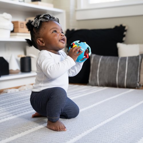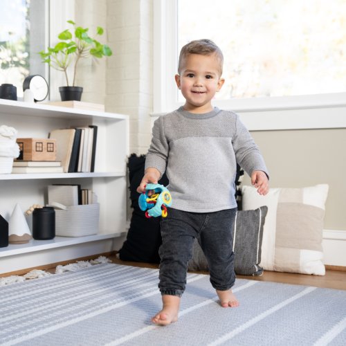 Traste a objavujte! Senzorická hračka je ideálnou hračkou pre deti od 3 mesiacov, ktoré začínajú objavovať svet cez dotyk, zvuk a farby. Táto loptička ľahko padne do držadla a ponúka množstvo zmyslových podnetov, ktoré podporujú vývoj bábätka a učenie hrou. Tri korálkové dráhy pomáhajú rozvíjať jemnú motoriku a rôzne textúry sú ideálne na hmatové objavovanie. Bábätká milujú sledovanie pohybujúcich sa korálikov a učia sa princípu príčina-následok, keď každé zatrasenie vytvorí zvuk! Žiarivé farby a výrazné vzory podporujú zrakový vývoj. Hračka bola nezávisle testovaná a schválená z hľadiska bezpečnosti. Objavovanie nikdy nebolo zábavnejšie!