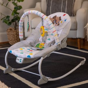 Jedno lehátko, dva spôsoby ako upokojiť a zabaviť bábätko od narodenia až do obdobia batoľaťa! Lehátko Dean's Discovery Spot Musical Infant je ideálne na upokojenie a zábavu dieťaťa, zatiaľ čo si rodičia môžu na chvíľu oddýchnuť. Navrhnuté v USA výrobcom č. 1 v kategórii lehátok. Umožňuje dieťaťu oddychovať, počúvať hudbu a objavovať zmysly v sede alebo pri hojdacom pohybe. Upokojte a pobavte bábätko viac ako 20 minútami jemných vibrácií a melódií. Lehátko môžete jemne hojdať alebo zapojiť stojan a zmeniť ho na stabilné sedátko. Hrazdička s dvoma visiacimi hračkami podporuje naťahovanie a objavovanie: hrkálka v tvare slnka a šuštiaca knižka. Ako dieťa rastie, môžete odobrať hrazdičku a deaktivovať stojan, čím sa sedátko premení na hojdačku pre batoľa!