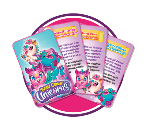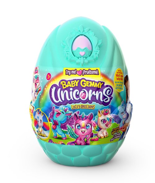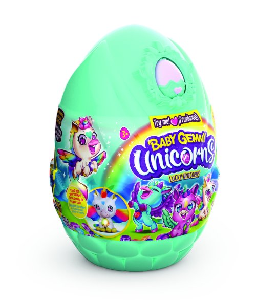 Baby Gemmy Unicorns je čarovné vajíčko, v ktorom sa ukrýva roztomilý, plyšový jednorožec. Do vajíčka je vložený kúzelný amulet, ktorý sa o ža pripevniť na jednorožca a alebo ho môžu deti nosiť samy. Výrobok obsahuje plyšového jednorožca, kúzelný amulet a 4 kartičky. Hračka je vhodná pre deti od 3 rokov.