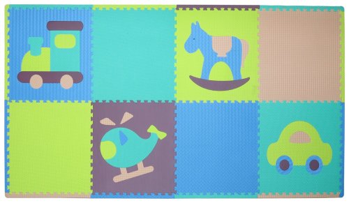 Veľká hracia plocha s okrajmi a motívom hračiek pre chlapcov. Penové puzzle v moderných farbách s rôznorodou povrchovou štruktúrou pre Vašich najmilších. Koberec sa skladá z ôsmich veľkých štvorcových dielov a dvanástich okrajových dielikov. Štyri diely majú vyberateľné časti a štyri diely sú bez vyberateľných obrázkov. Rozmer jedného dielika: 60 x 60 cm (merané bez okraja od zuba po výrez). Rozmer zloženého puzzle: cca 244 x 124 cm. Bezpečná a mäkká podložka je umývateľná, tlmí hluk a izoluje od chladu, je preto ideálna ako hrací koberec nielen do detských izieb. Rôzne farby, tvary dielikov a štruktúry povrchu stimulujú zmyslové vnímanie. Pri skladaní si s deťmi užijete nielen množstvo zábavy, ale zároveň podporíte rozvoj fantázie a motoriky. Odporúčané pre deti od 3 rokov. Neobsahuje ftaláty, kadmium, amoniak, ani formaldehyd. Poznámka: Farebné prevedenie je ilustratívne a môže sa líšiť.